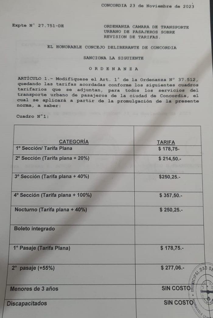 Concordia El Concejo Deliberante de Concordia autorizó una nueva suba en el boleto de colectivo 23 noviembre, 2023 - 20:21