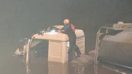 Policiales VIDEO: Un camión cayó desde un puente sobre la Autovía y debieron rescatar al chofer 6 julio, 2021 - 10:36
