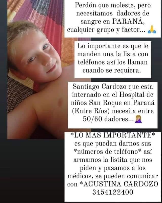 Interés general Piden dadores de sangre «de cualquier grupo y factor» para un niño concordiense internado en Paraná 6 julio, 2021 - 20:02